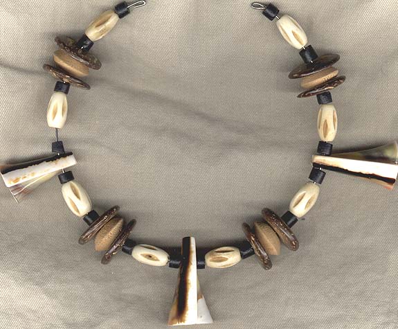 CHOKER: trumpet shells, camel bone, coconut, & wood
