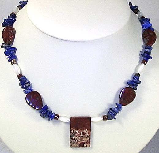 NECKLACE: poppy jasper, lapis lazuli chips, & mother-of-pearl