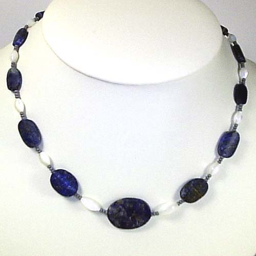 NECKLACE: matte blue lapis lazuli & mother-of-pearl