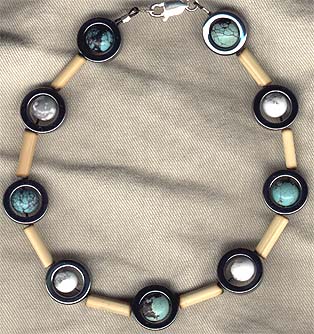 BRACELET: Asian turquoise, howlite, hematite, & bamboo