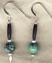 EARRINGS: Asian turquoise, black horn, & silver