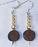 EARRINGS: raku coins & golden crackle rounds