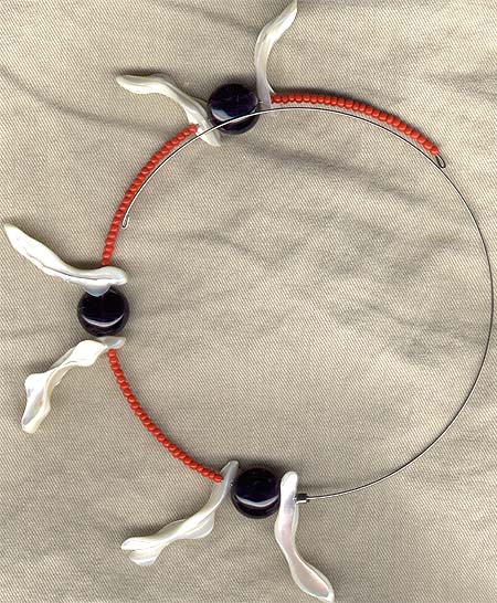 CHOKER: dark purple amethyst coin & mother-of-pearl frangia