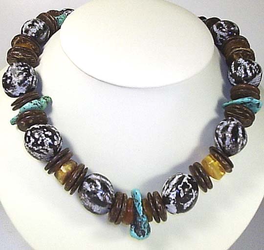 NECKLACE: bibakao nuts, honey amber, & Sleeping Beauty turquoise nuggets
