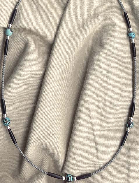 NECKLACE: Asian turquoise, black horn, & silver crackle rounds
