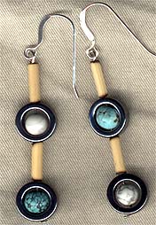 EARRINGS: Asian turquoise, howlite, hematite, & bamboo