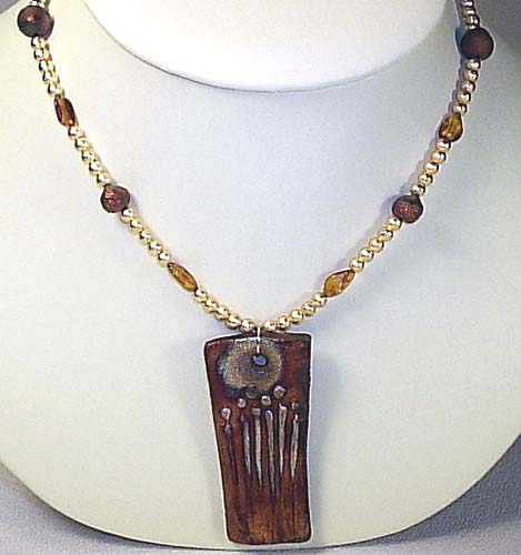 NECKLACE: raku door pendant, honey amber, & golden crackle rounds